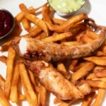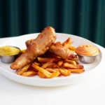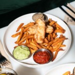 Tables empruntées aux épais billots des poissonniers, sol terrazzo figurant la glace pilée où l’on conserve les poissons ou encore cannages évoquant la fine dentelle de la panure du fish & chips, la décoration du restaurant Mersea – ouvert le 16 octobre 2018 dans le septième arrondissement de Paris – plonge subtilement le visiteur dans le bain.